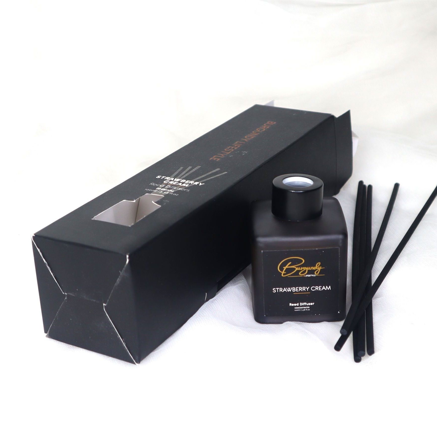 Burgundy Reed Diffusers are a beautiful, functional, and instant way to fragrance a space. It is made from high concentration fragrance oils that travel up the reeds and into your space.